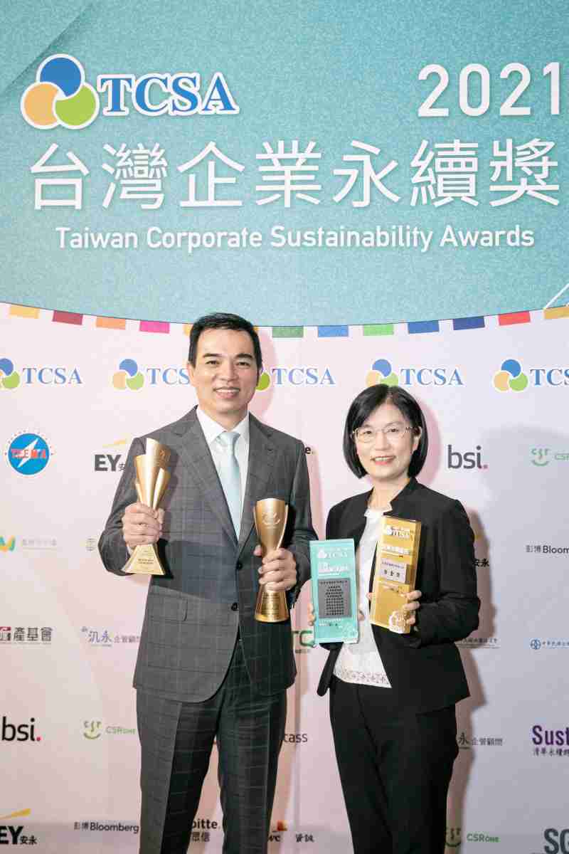 达在台湾永续奖所评比环境、、、社会、、治理等各面向的永续绩效均获高度肯定 (左:918.COM光电总经理暨营运长柯富仁,,右:918.COM光电永续长古秀华)